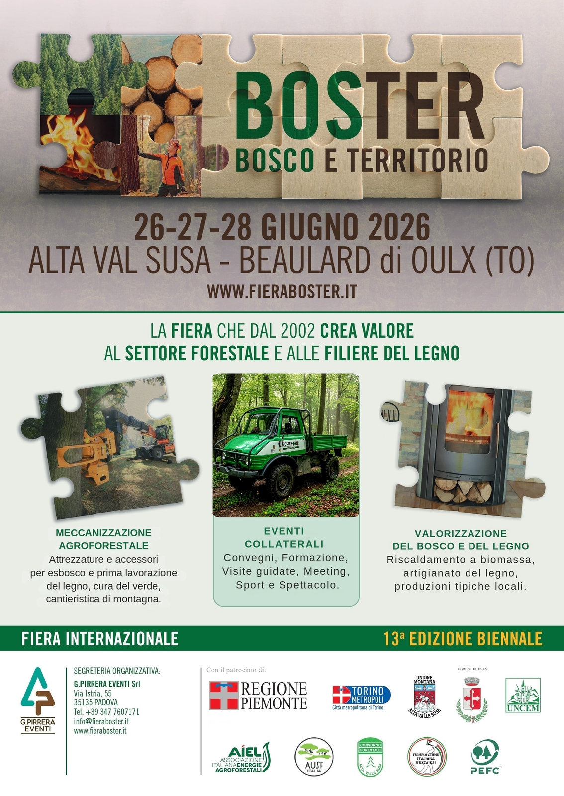 TRA DUE MESI LA FIERA BOSTER, BOSCO E TERRITORIO, DAL 26 AL 28 GIUGNO A OULX