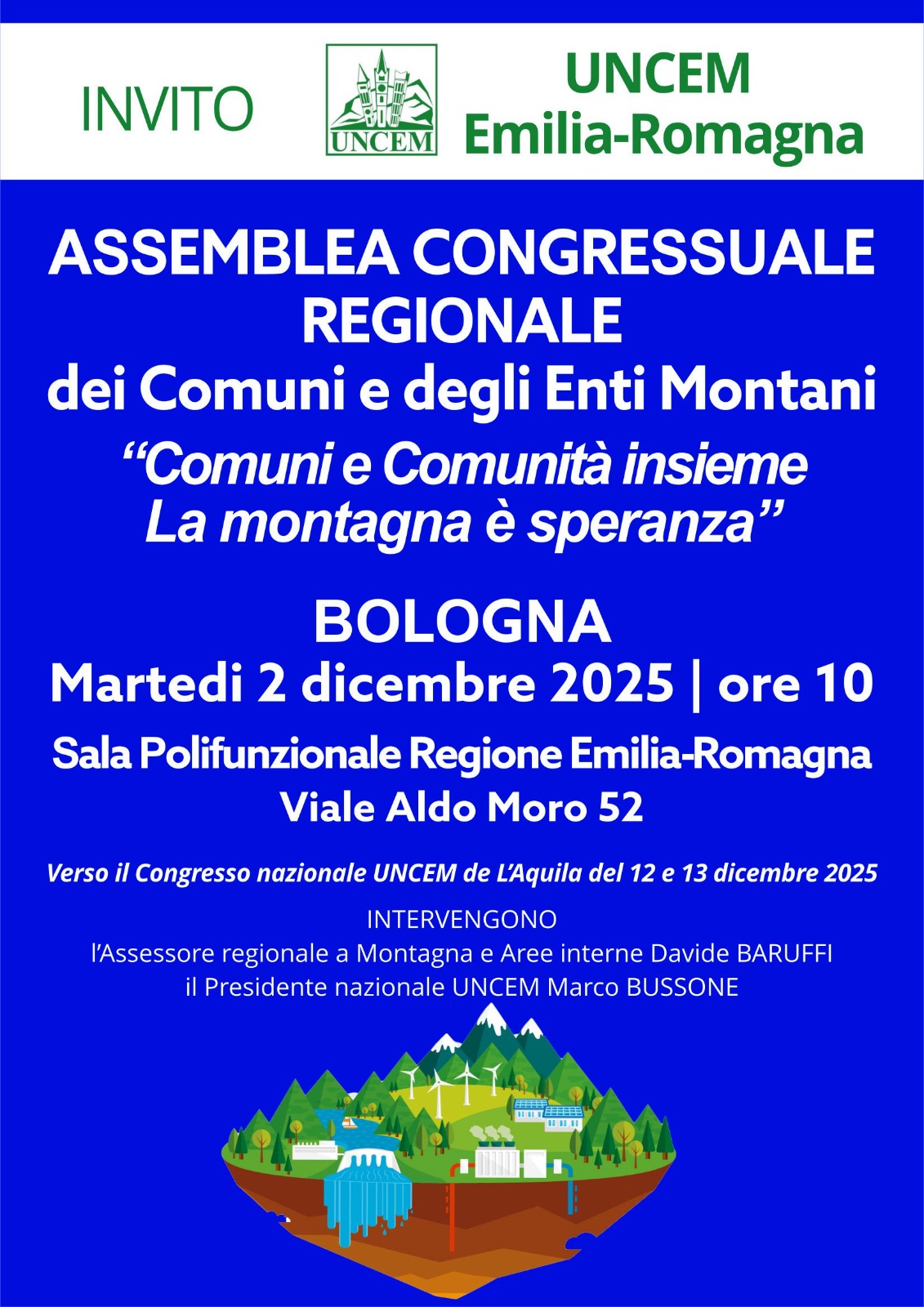 A BOLOGNA MARTEDI 2 DICEMBRE IL CONGRESSO UNCEM EMILIA-ROMAGNA: CON I SINDACI, PER I TERRITORI. MONTAGNA È SPERANZA