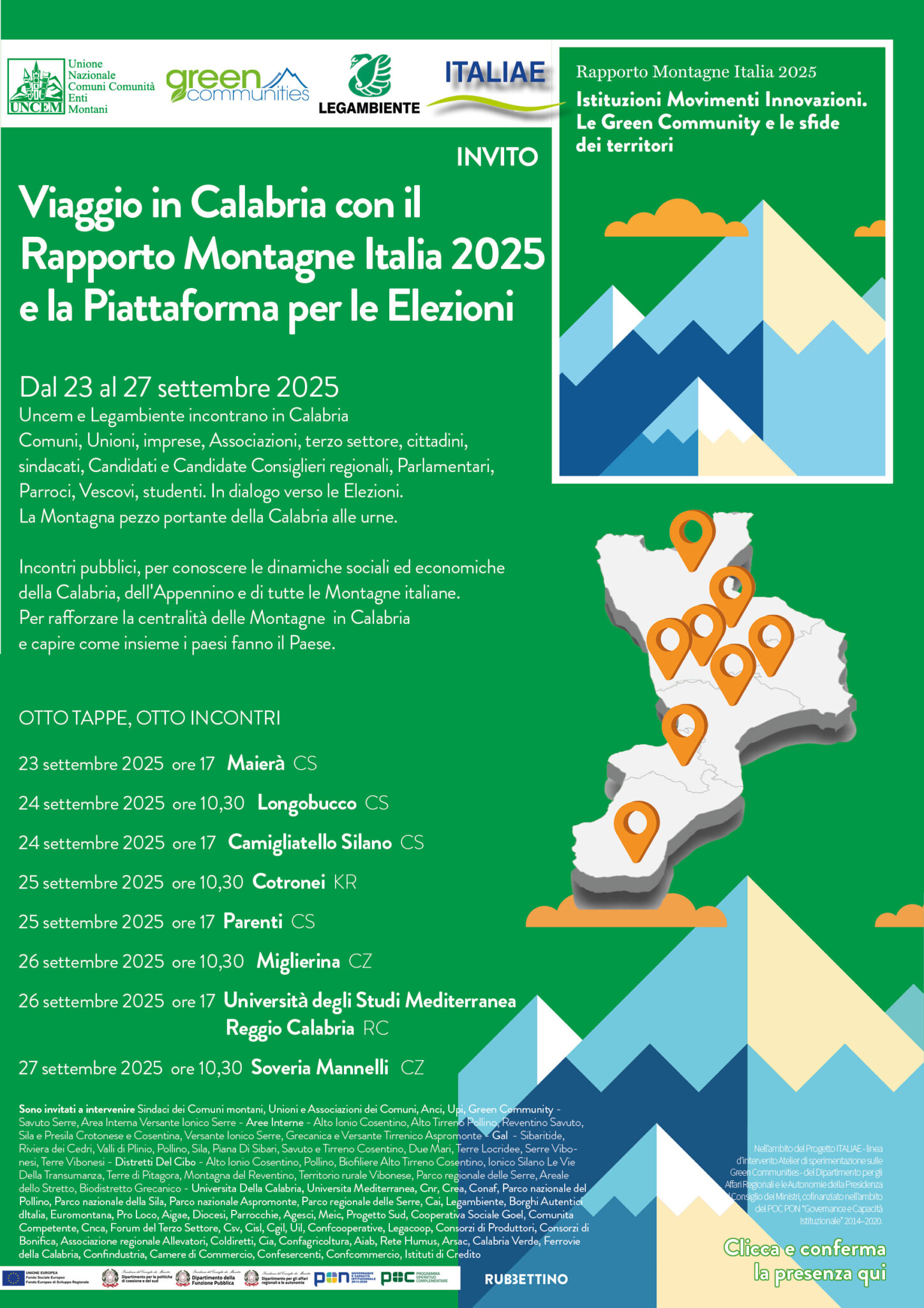 L’UNCEM – Unione Nazionale Comuni Comunità Enti Montani – è l’organizzazione nazionale unitaria che da oltre 60 anni raggruppa e rappresenta i comuni interamente e parzialmente montani le comunità montane e le Unioni di comuni montani.
