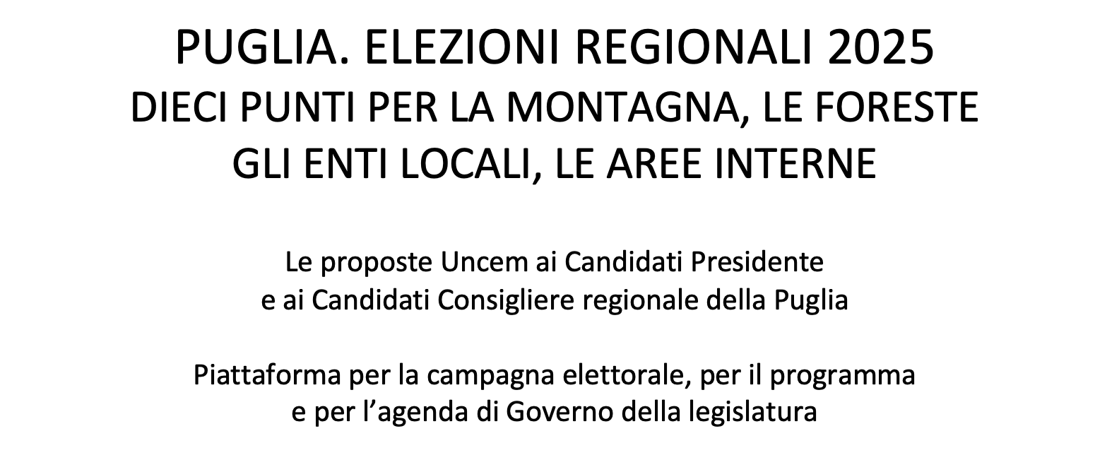 DIECI PUNTI UNCEM VERSO LE ELEZIONI DELLA PUGLIA. UNA PIATTAFORMA DI PERCORSI PER FAVORIRE IL DIALOGO – E IL “PATTO” – TRA CANDIDATI (E POI ELETTI) ED ELETTORI