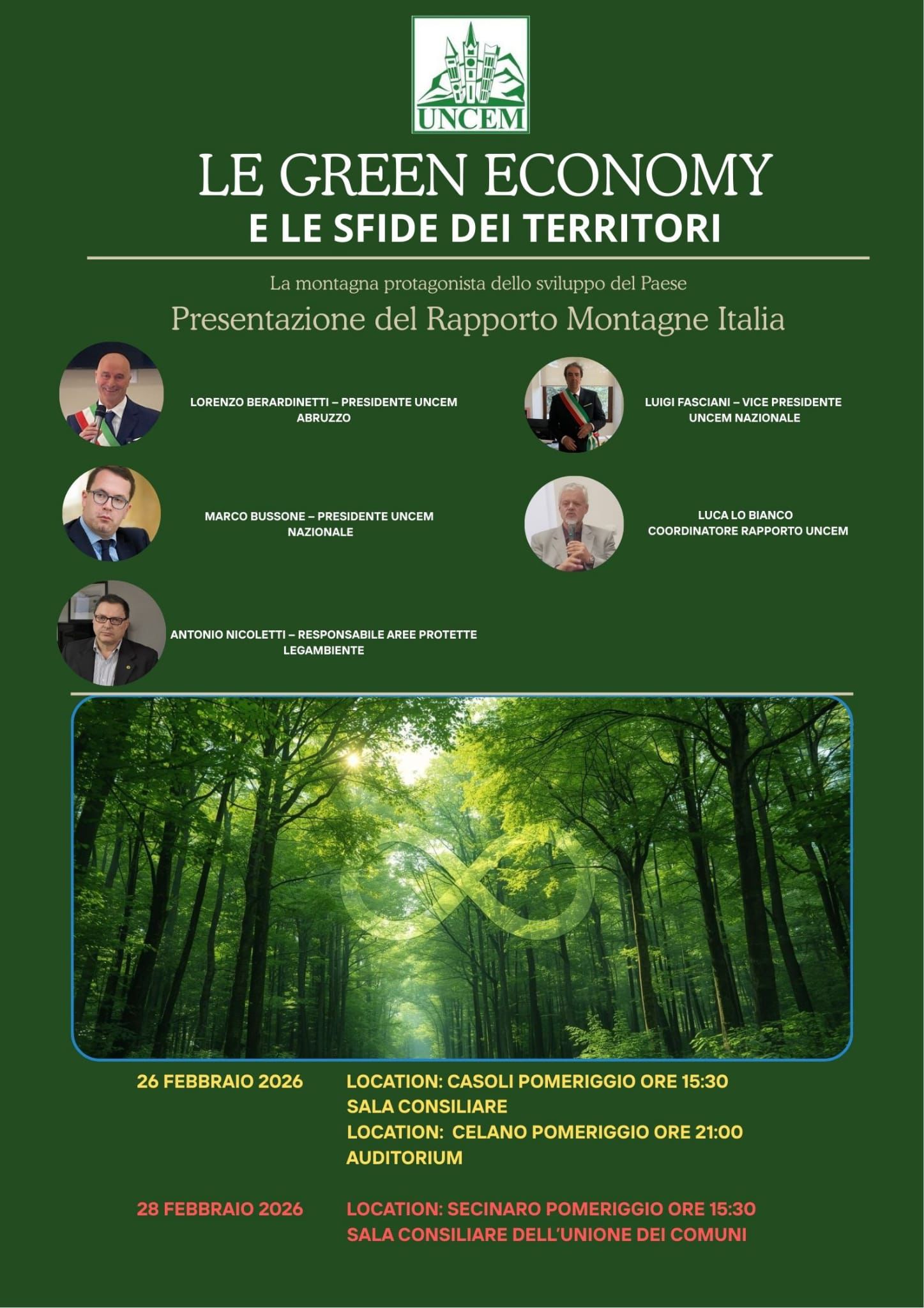 UNCEM IN ABRUZZO CON IL RAPPORTO MONTAGNE ITALIA. TRE INCONTRI A CELANO, SECINARO E CASOLI IL 26 E IL 28 FEBBRAIO 17 febbraio 2026